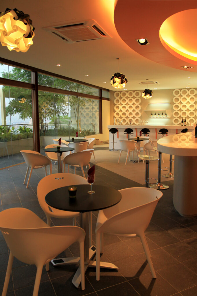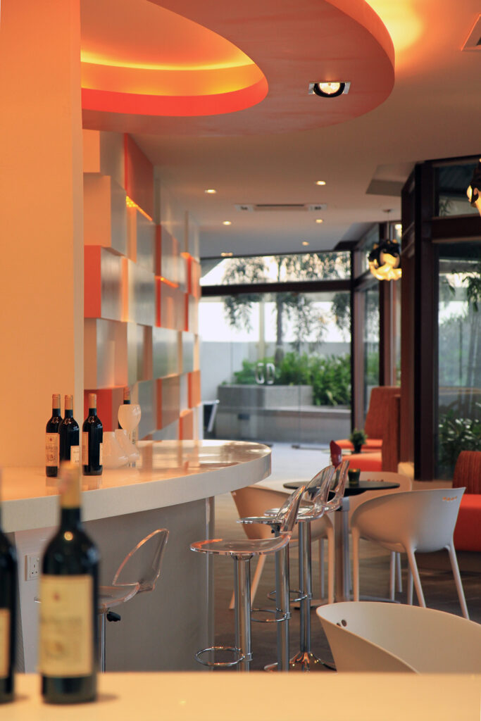 The café in Meridian USJ has been designed to be an open space that is not confined with too much borders or walls – making it a great place for a quick bite or hangout. The design also uses different geometrical shapes that are used in different ways throughout the space. This design allows the café to impart a sense of calm and peace.