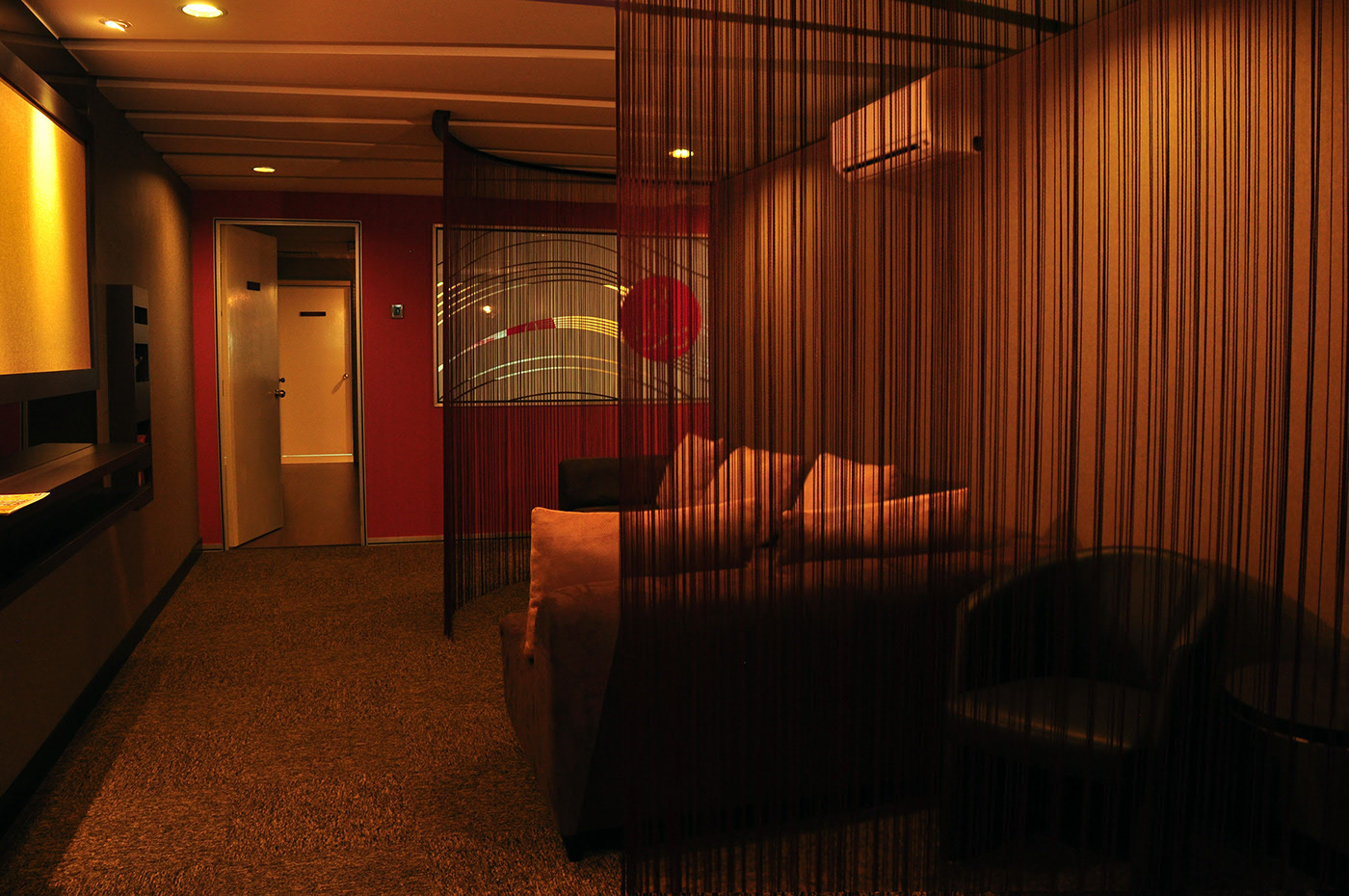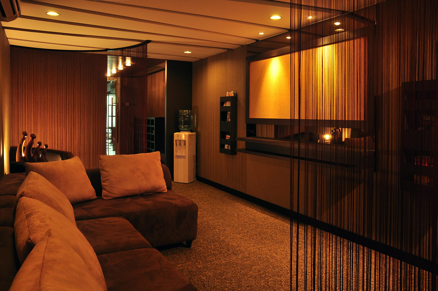 The dim lighting provides tranquility, which is the main goal of the whole design. The lights are low, perfectly matched with soft music playing in the background. This Yoga Centre can really help people in any state of mind.