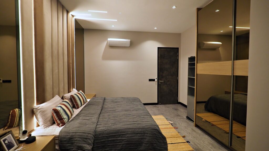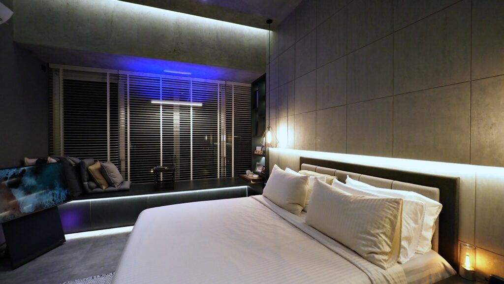 The Schumann in Cyberjaya is a luxurious and modern industrial design with raw cement, steel, glass, and concrete as decorative statements. It also has an impressive wall-to-wall window that provides natural light to the rooms. The design is mostly coveted with stone and concrete, but also uses a combination of glass and steel to create an illusion of grandeur.
